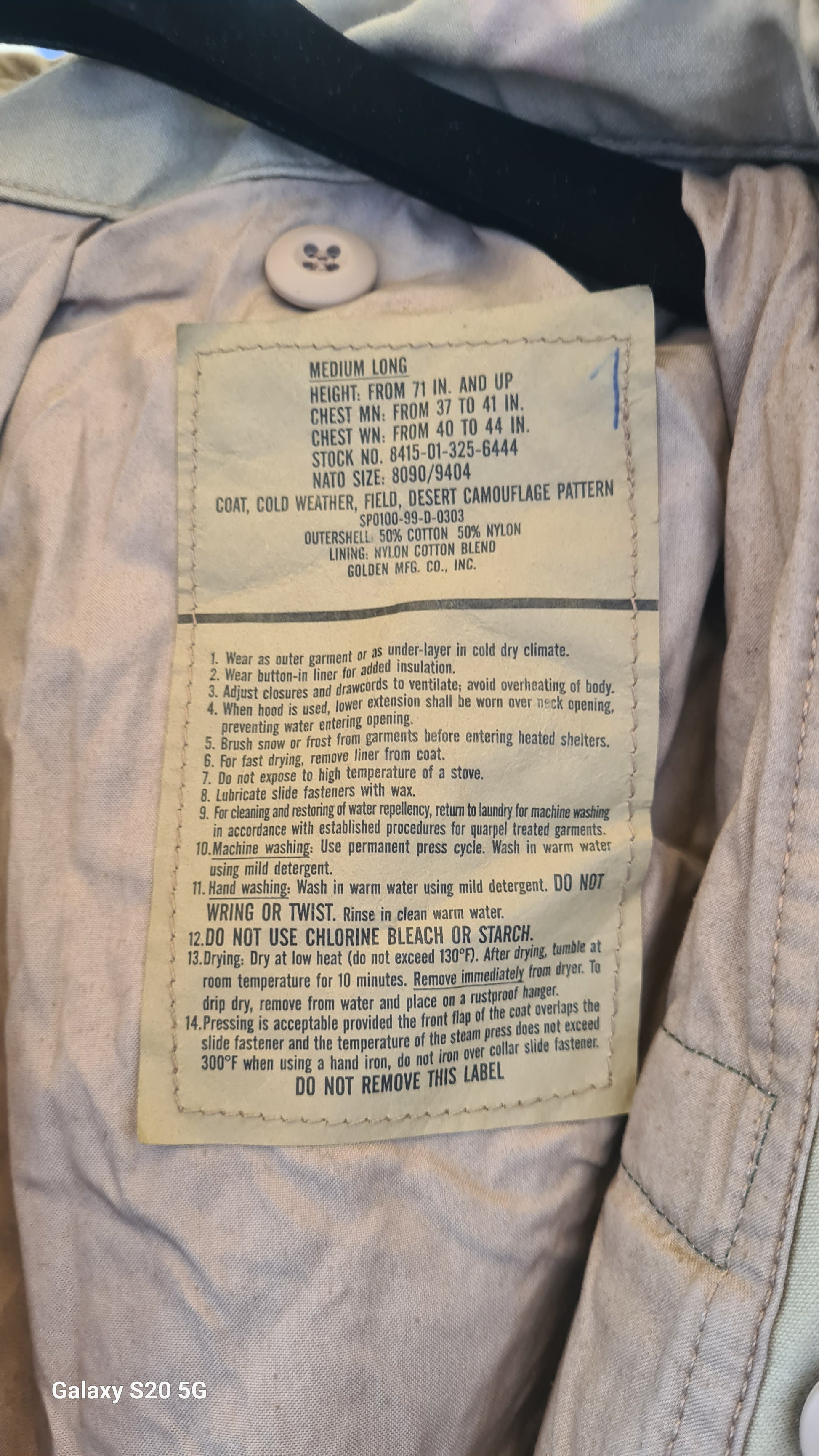 Original desert m65 jacket.Size medium long